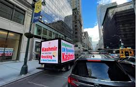 Other messages beamed from the trucks were: “Stop: India’s Demographic Change in Kashmir,” “Indian Army Out of Kashmir,” “Hold India Accountable for War Crimes in Kashmir,” “Elections in Kashmir Just a Name: Indian Government Has No Shame.”