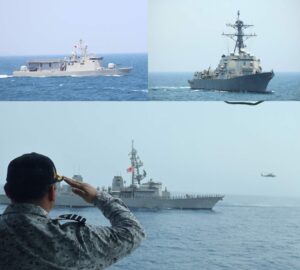 Upon culmination of port visit, PNS YARMOOK conducted bilateral exercises with Royal Bahrain Navy Ship AL-MANAMA, US Ship DANIEL INOUYE and Japanese Maritime Self Defence (JMSDF) Ship, JS SAMIDARE. The exercises were aimed to develop synergy and mutual understanding among partner Navies while rehearsing interoperability to undertake joint operations in the region.