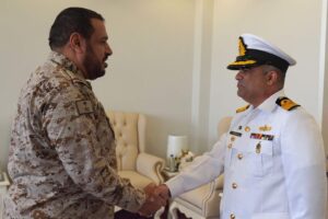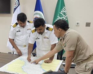 Upon arrival at Jeddah port, the ship was received by senior officials of Royal Saudi Naval Forces (RSNF) and officials of Pakistan Embassy. During stay at port, Commanding Officer PNS HUNAIN called on RSNF Navy Western Fleet Commander Rear Admiral Mansoor Bin Saood Al Jayyad and Commander King Faisal Naval Base Rear Admiral Saleh Bin Abdullah Al-Amri. During the meeting, matters of mutual interest and bilateral cooperation between both the navies were discussed.