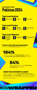Karachi: As 2024 draws to a close, the wait is finally over for music lovers nationwide—Spotify has unveiled Your Spotify Wrapped 2024, showcasing the sounds that defined the year both globally and in Pakistan. This year’s Wrapped data celebrates the artists, songs, and trends that made 2024 a record-breaking, culture-shaping, and fandom-inspiring year in music.
