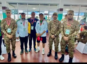 CISM Pakistan Armed Forces tri services team has won five medals in the event; Gold Medal in 400m race and Silver Medal in 200m race by Chief Warrant Officer Mueed Bloch, Pakistan Air Force and Bronze Medal in 5000m race and Silver Medal in 10000m race by Sep Muhammad Akhtar, Pakistan Army. In 25 Meter pistol shooting rapid team events category, Nk Qasim Bilal, Sepoy Ismail Khan and Sepoy Muhammad Rashid of Pakistan Army won Silver Medal.